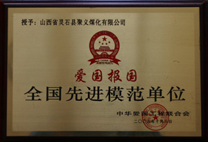 2005.6.19聚義煤化有限公司愛(ài)國(guó)報(bào)國(guó)全國(guó)先進(jìn)模范單位中華愛(ài)國(guó)工程聯(lián)合會(huì)