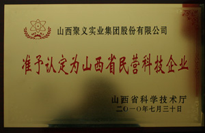 2010.7.30山西聚義實(shí)業(yè)集團(tuán)股份有限公司山西省民營(yíng)科技企業(yè)山西省科學(xué)技術(shù)廳