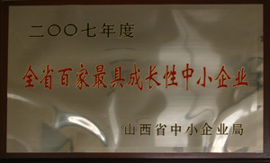 2008.5聚義實(shí)業(yè)集團(tuán)2007年度“全省百家最具成長(zhǎng)性中小企業(yè)”山西省中小企業(yè)局