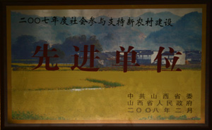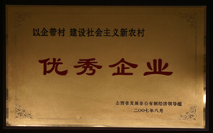 2007.8聚義煤化有限公司優(yōu)秀企業(yè)山西省發(fā)展非公有制經(jīng)濟(jì)領(lǐng)導(dǎo)組