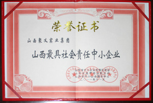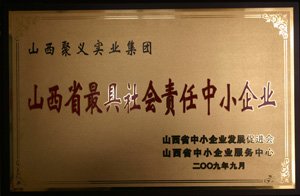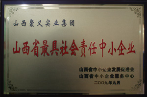 2009.9聚義實(shí)業(yè)集團(tuán)山西省最具社會(huì)責(zé)任感中小企業(yè)山西省中小企業(yè)發(fā)展促進(jìn)會(huì)