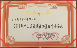 2012.12山西聚義實(shí)業(yè)集團(tuán)2011年度山西最具社會(huì)責(zé)任中小企業(yè)山西省中小企業(yè)發(fā)展促進(jìn)會(huì)