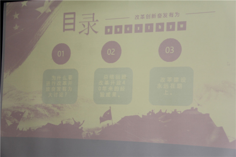 三是確保開展“大討論”活動出實效。集團各級各部門,特別是領導干部要帶頭學習政策、研究政策、吃透政策。要充分發(fā)揮集團黨工組織參與生產經營活動的優(yōu)勢,充分調動聚義廣大黨員干部、職工群眾為公司發(fā)展查擺目前存在的問題,尋求解決問題的辦法,提出合理建議,為聚義改革創(chuàng)新、持續(xù)發(fā)展亮出“金點子”。IMG_4519.JPG  史總希望,每一位聚義人要以“改革創(chuàng)新,奮發(fā)有為”大討論為契機,不忘初心,珍惜機遇,認真履職,勤奮工作,在聚義轉型發(fā)展的實踐中以改革創(chuàng)新、足程不息、奮發(fā)有為、追求卓越的奮斗精神創(chuàng)造業(yè)績,用實際行動為聚義集團美好的明天做出更大的貢獻。IMG_4545.JPG    宣講授課由經過縣委宣傳部集中培訓的喬晉萍、張兆保兩位宣講輔導員宣講,宣講輔導的主要內容是開展“改革創(chuàng)新 奮發(fā)有為”大討論活動重要意義和方法步驟。